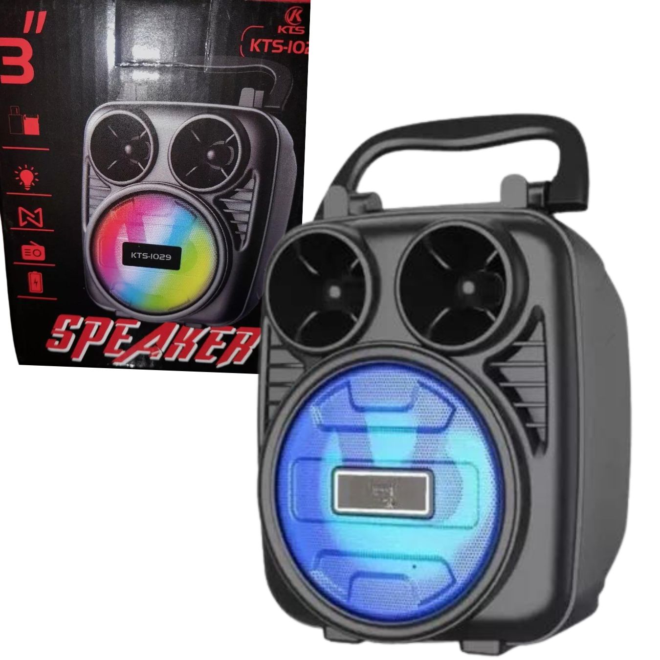 Caixa De Som 3 Polegadas Com Suporte de Celular KTS-1029Caixa de som portátil com som limpo e claro.Design moderno, com apoio para celulares e alça para transporte.Conexão bluetooth, rádio FM e TWS, além de entradas para USB e cartão TF.Distância de trabalho de até 10 metros.Bateria recarregável via cabo micro V8.Alto-falante de 3 polegadas.Vários modos de luzes de LED.Dimensões aproximadas: 17 x 11 x 8 cmCores variadas