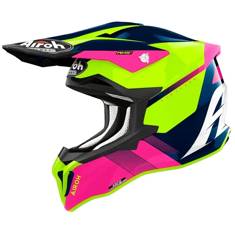O Capacete Airoh Strycker Blazer M (57-58) nas cores Azul/Rosa é um item essencial para os amantes do motociclismo que buscam não apenas segurança, mas também estilo em suas aventuras sobre duas rodas. Projetado com materiais de alta qualidade, este capacete oferece uma proteção eficaz sem comprometer o conforto do usuário. Sua estrutura leve permite longas horas de uso, sem causar fadiga no pescoço, enquanto o forro interno é removível e lavável, garantindo uma higiene impecável.\n\nAlém de sua alta performance em segurança, o design arrojado do Airoh Strycker Blazer se destaca pela combinação de cores vibrantes que expressam personalidade e ousadia. Equipado com um sistema de ventilação eficiente, o capacete proporciona uma excelente circulação de ar, mantendo a temperatura agradável durante trajetos em dias quentes. Aposte no Capacete Airoh Strycker Blazer para elevar sua experiência de pilotagem com conforto e estilo, assegurando que cada viagem seja uma verdadeira alegria.