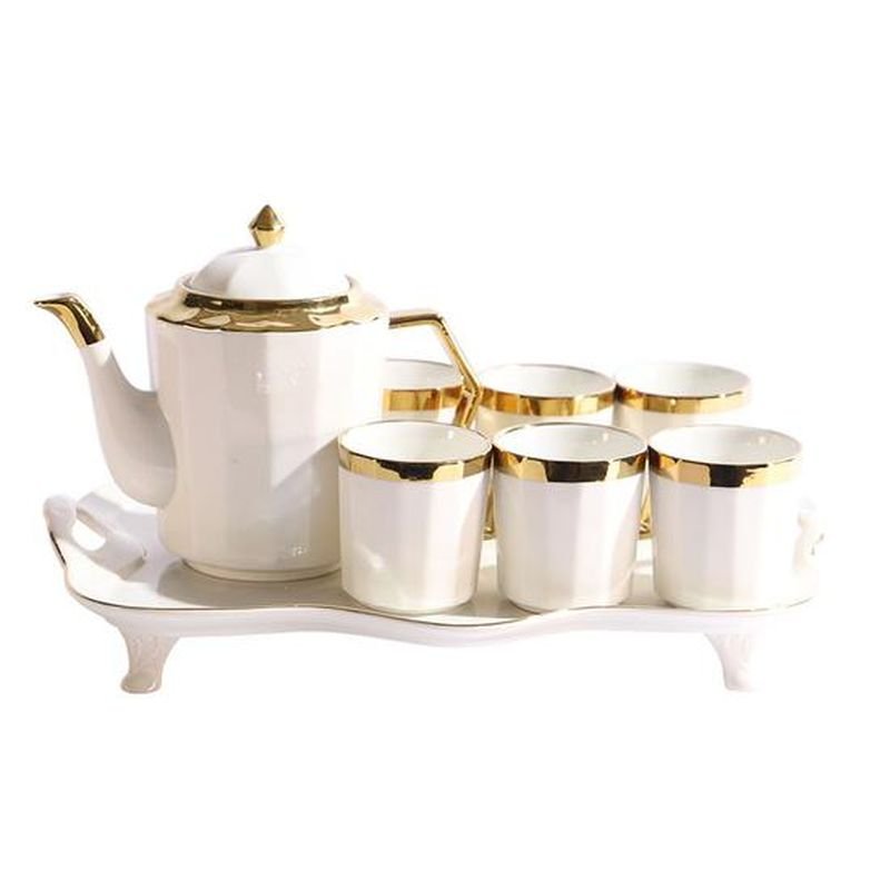 Apresentamos o Conjunto de Chá em Cerâmica com 8 Peças, a escolha perfeita para quem aprecia momentos especiais à mesa. Este elegante conjunto inclui um bules, quatro xícaras e uma bandeja, todos elaborados com cerâmica de alta qualidade, que garante durabilidade e resistência ao calor. O design refinado e contemporâneo combina um acabamento liso e delicado, ideal para qualquer ocasião, desde um simples lanche da tarde até um evento mais formal.\n\nCada peça deste conjunto foi projetada para proporcionar uma experiência única de degustação. As xícaras são confortáveis na mão e têm um tamanho adequado para servir porções generosas de chá. A bandeja, por sua vez, facilita o transporte e organização durante o serviço, permitindo que você impressione seus convidados. Com o Conjunto de Chá em Cerâmica, você não apenas embeleza sua mesa, mas também eleva o ato de servir a um verdadeiro ritual de prazer e sofisticação.