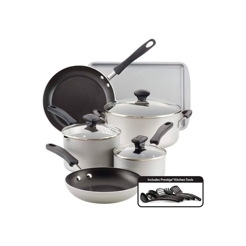 Conjunto de Panelas Antiaderente Farberware Diamond Max 15 Peças - Prata e Cinza