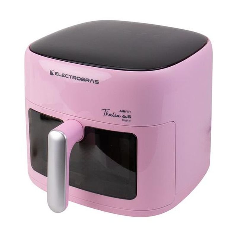 A Fritadeira Elétrica Air Fryer Electrobras Thalia é a solução ideal para quem busca praticidade e saúde na hora de cozinhar. Com uma capacidade generosa de 6,5 litros, você pode preparar porções maiores de alimentos, tornando-a perfeita para famílias ou encontros com amigos. Seu potente sistema de aquecimento de 1500W garante uma fritura rápida e eficiente, permitindo que você desfrute de refeições saborosas sem a necessidade de usar grandes quantidades de óleo. Assim, você pode saborear pratos fritos de maneira muito mais saudável, preservando o sabor e a textura dos alimentos.\n\nO design moderno em rosa traz um toque de estilo à sua cozinha, enquanto o painel digital intuitivo facilita o controle da temperatura e do tempo de cozimento. Além disso, a Air Fryer Electrobras Thalia é fácil de limpar, com partes removíveis que são adequadas para máquinas de lavar louça, proporcionando uma experiência de uso prática e descomplicada. Invista em tecnologia e bem-estar no seu dia a dia com esta fritadeira que transforma sua maneira de cozinhar.