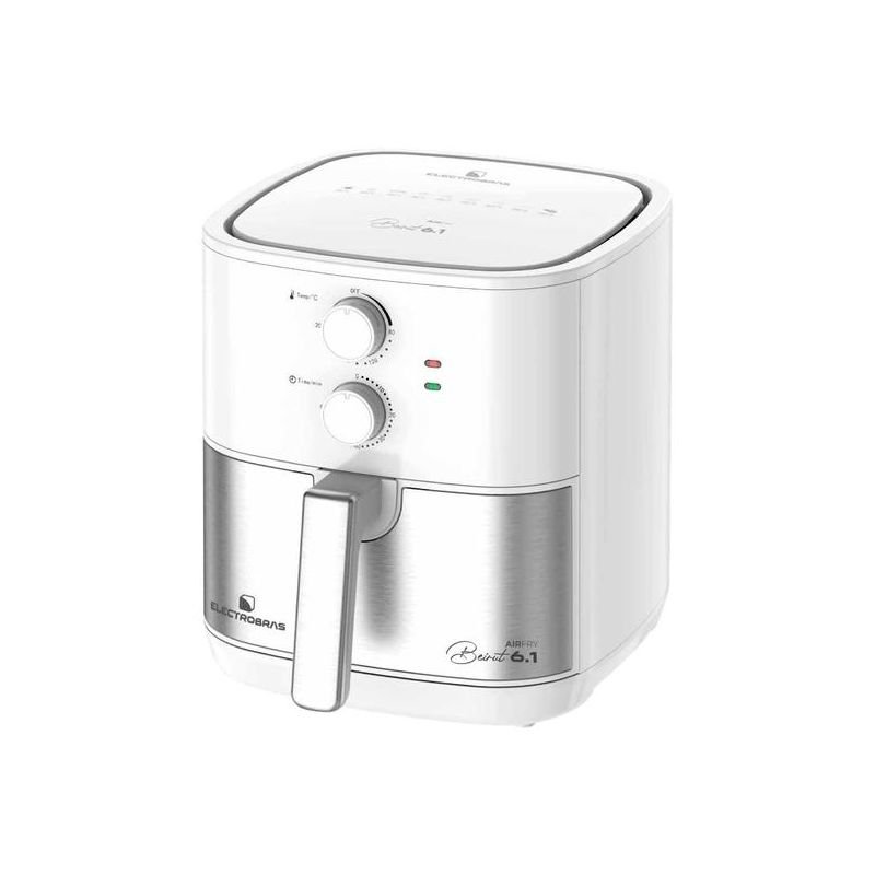 A Fritadeira Elétrica Airfry Beirut EBAF-61-W é a escolha perfeita para quem busca uma maneira saudável de preparar suas refeições. Com capacidade para 6,1 litros e potência de 1900W, ela oferece eficiência e praticidade, permitindo fritar, assar e grelhar seus alimentos de maneira rápida e homogênea, utilizando até 80% menos gordura que uma fritadeira convencional. Seu design moderno em prata e branco se integra facilmente a qualquer ambiente, tornando-a não apenas uma ferramenta de cozinha, mas também um elemento decorativo.\n\nEquiparada com tecnologia de circulação de ar quente, a EBAF-61-W garante que seus pratos fiquem crocantes por fora e macios por dentro. A sua interface intuitiva torna o uso descomplicado, permitindo que você controle o tempo e a temperatura adequados para cada tipo de alimento. Seja para preparar batatas fritas, aves ou até mesmo legumes, esta fritadeira elétrica proporciona resultados deliciosos, satisfazendo assim até os paladares mais exigentes. Descubra a facilidade e praticidade de cozinhar de forma mais saudável com a Fritadeira Elétrica Airfry Beirut.