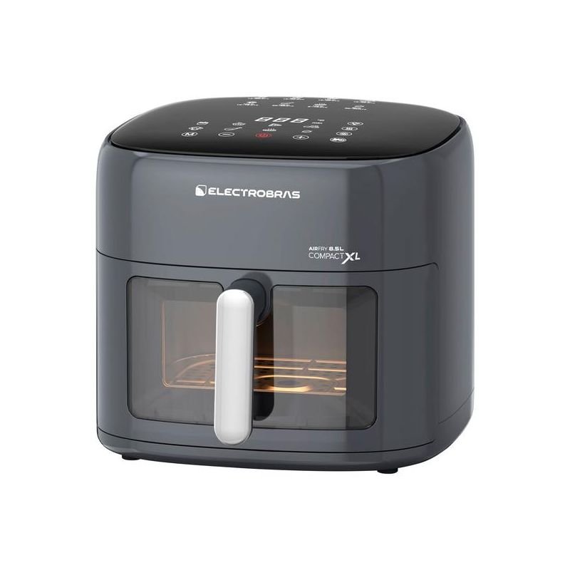 A Fritadeira Elétrica Airfry Electrobras Compacta XL é a solução ideal para quem busca uma alternativa saudável e prática na culinária. Com capacidade generosa de 8,5 litros e potência de 1900W, este aparelho permite preparar uma grande variedade de pratos com rapidez e eficiência. Seu design moderno e elegante na cor cinza se adapta perfeitamente a qualquer ambiente de cozinha, tornando-se um verdadeiro destaque.\n\nGraças à tecnologia de circulação de ar quente, a fritadeira proporciona uma crocância irresistível nos alimentos, utilizando até 80% menos óleo do que as fritadeiras tradicionais. Isso garante refeições mais leves sem abrir mão do sabor. Além disso, seu funcionamento em 220V garante um desempenho superior, ideal para quem busca agilidade e praticidade no dia a dia. Experimente a Fritadeira Elétrica Airfry Electrobras e transforme sua experiência culinária com comidas saborosas e saudáveis.