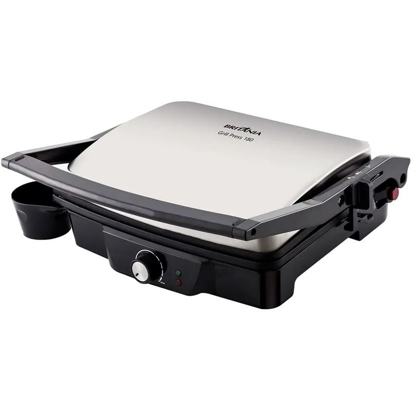 A Grill e Sanduicheira Britânia Press 180 é a solução ideal para quem busca praticidade e eficiência na hora de preparar deliciosos lanches e grelhados. Com uma potência de 1830W, este aparelho se destaca pela sua rápida e uniforme distribuição de calor, garantindo que seus sanduíches fiquem crocantes por fora e macios por dentro. Seu design moderno na combinação de preto e cinza se adapta a qualquer cozinha, proporcionando um toque contemporâneo ao ambiente.\n\nAlém de sua alta performance, a Britânia Press 180 oferece segurança e conforto no manuseio, com alças que permanecem frias mesmo durante o uso. A chapa antiaderente permite um fácil deslizamento dos alimentos e facilita a limpeza após o preparo. Seja para um lanche rápido ou um churrasco em família, esta sanduicheira é versátil e atende a todas as suas necessidades, tornando-se um item indispensável na sua cozinha. Experimente a praticidade e o sabor que a Grill e Sanduicheira Britânia Press 180 pode proporcionar aos seus momentos culinários.