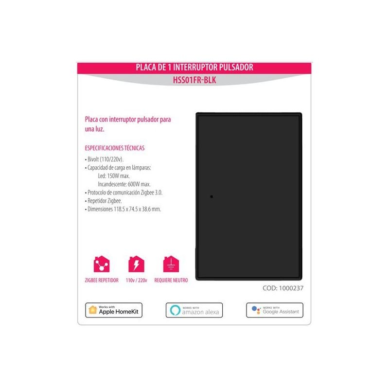 O Interruptor Inteligente Zigbee Homie Esp Push 1 na cor preta (HSS01FR-BLK) oferece uma solução moderna e eficiente para o controle de iluminação em sua casa. Com tecnologia Zigbee, este interruptor permite uma integração fácil com outros dispositivos inteligentes, proporcionando uma experiência de automação residencial fluida e intuitiva. Seu design sofisticado e discreto combina perfeitamente com qualquer ambiente, garantindo que sua decoração não seja comprometida.\n\nAlém de suas funcionalidades avançadas, o Interruptor Inteligente Homie proporciona comodidade através do controle remoto e programações personalizadas, permitindo que você gerencie seu sistema de iluminação de qualquer lugar, a qualquer hora. Com uma instalação simples e compatibilidade com uma variedade de sistemas de automação, este produto é ideal para quem busca modernizar sua residência com tecnologia de ponta, aumentando a eficiência energética e o conforto do dia a dia.