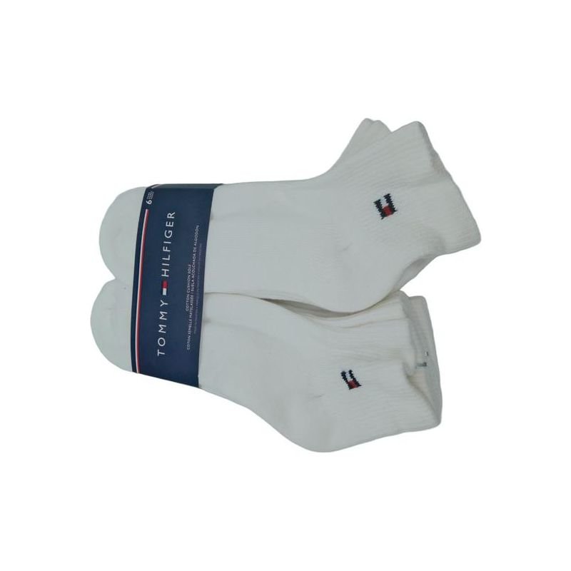Este kit de 6 pares de meias unissex da Tommy Hilfiger é a escolha perfeita para quem busca conforto qualidade e estilo. As meias são fabricadas com materiais de alta qualidade para garantir durabilidade e maciez ao toque. O design clássico em branco com o logo icônico da Tommy Hilfiger bordado acrescenta um toque de sofisticação a qualquer look.\n\nAlém de serem elegantes essas meias são extremamente versáteis podendo ser usadas em diversas ocasiões desde o dia a dia até ocasiões mais especiais. O kit de 6 pares proporciona praticidade ao garantir que você sempre tenha uma meia à disposição. Invista em conforto e estilo com as meias Tommy Hilfiger e eleve o seu visual a um novo patamar.
