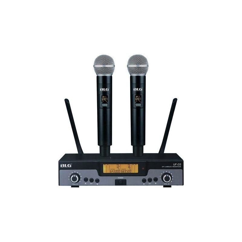 Microfone Sem Fio BLG Dual UF-03 UHF para Áudio Profissional