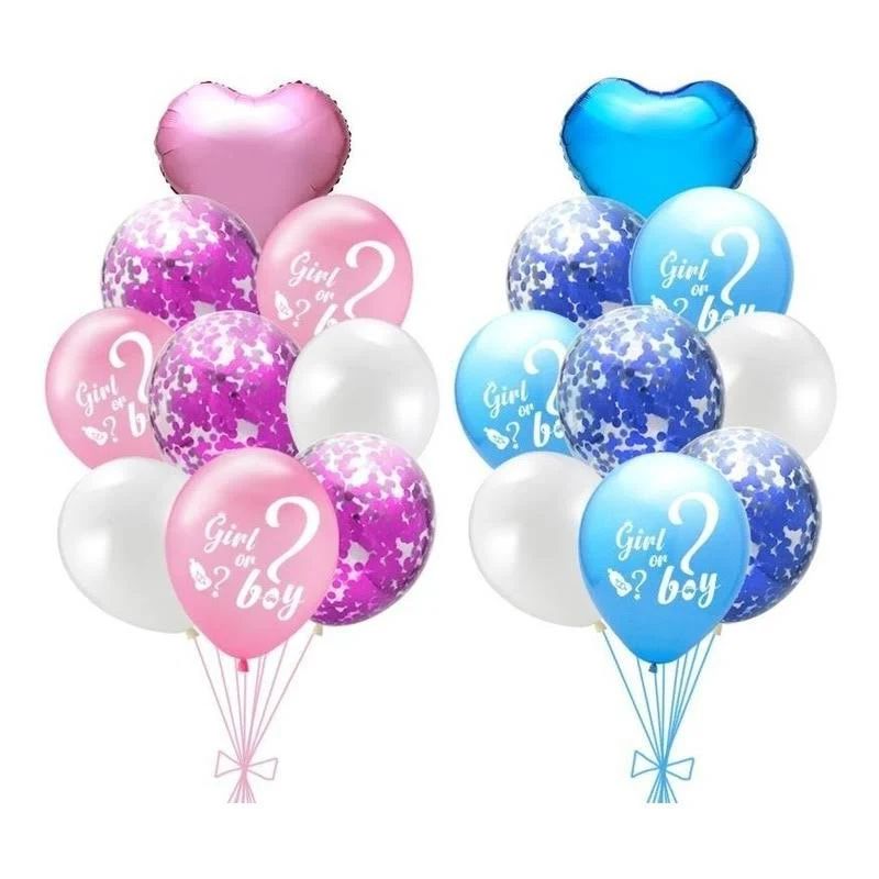 3 balões látex 9" na cor azul com lettering "Girl?Boy"