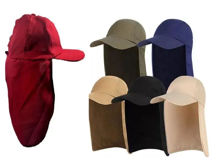 BONÉ PESCADOR COM PROTEÇÃO DE PESCOÇO CAMUFLADO VERDE OU COR LISA