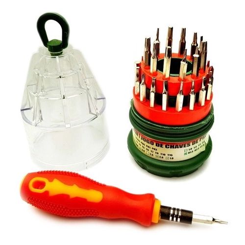 Kit de Ferramentas Chaves 31 em 1 com Torx, Allen, Fenda, Philips, Tri-Wing, Triangulo, Pentalobe, Spanner e Pino.
