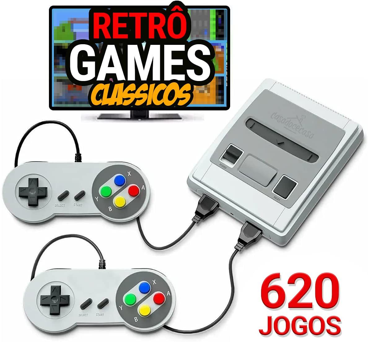 Videogame com 600 jogos 8-bits + 2 controles os 600 jogos vêm instalados na memória interna