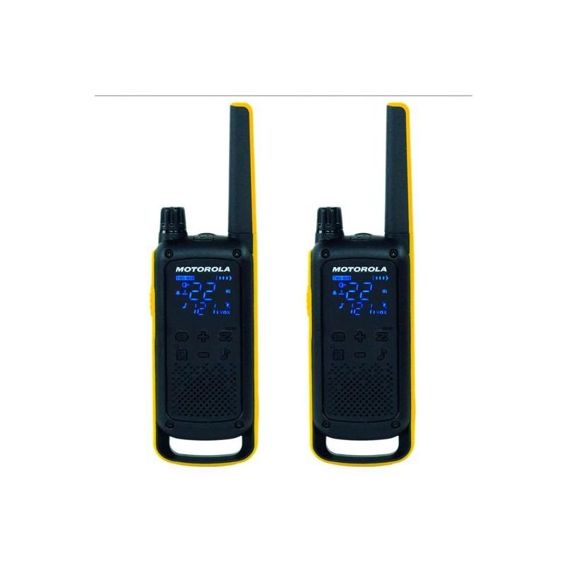 O Rádio Comunicador Motorola T-470 combina a robustez e a inovação da marca para proporcionar uma experiência de comunicação eficiente e confiável. Com um design moderno nas cores preto e amarelo, este modelo é ideal para aventuras ao ar livre, atividades recreativas e ambientes de trabalho que exigem uma comunicação clara e instantânea. Com um alcance impressionante de até 56 km, você pode se sentir seguro sabendo que poderá se conectar com sua equipe ou amigos, mesmo em áreas remotas.\n\nEste rádio comunicador conta com diversas funcionalidades que garantem sua praticidade e usabilidade, como alerta de bateria baixa, variedade de canais e um alto-falante integrado de qualidade. Além disso, o Motorola T-470 é resistente à água e poeira, o que o torna perfeito para enfrentar as mais diversas condições climáticas. Se você está em busca de um rádio comunicador confiável, que faça jus à reputação da marca Motorola, o T-470 é a escolha ideal para garantir que sua comunicação não sofra interrupções.