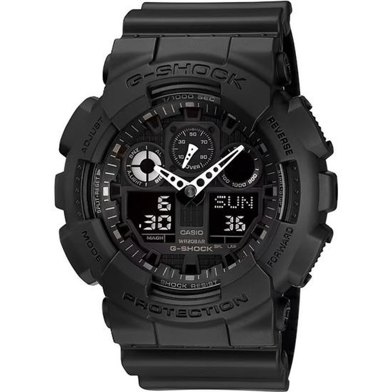 O Relógio Casio G-Shock GA-100-1A1DR é uma escolha perfeita para aqueles que procuram uma combinação de estilo e resistência. Com um design robusto na cor preta, este relógio analógico/digital é ideal para o homem moderno que aprecia a praticidade e a durabilidade em seus acessórios. A linha G-Shock é reconhecida mundialmente por sua tecnologia à prova d'água e resistência a impactos, tornando-o a opção ideal para atividades ao ar livre e esportes radicais. A tela digital integrada proporciona um display claro e fácil de ler, garantindo que você possa acompanhar suas atividades diárias sem complicações.\n\nAlém de sua resistência, o GA-100-1A1DR oferece uma variedade de funções úteis, como cronômetro, alarme e luz de fundo, que aumentam sua funcionalidade e versatilidade. Seu design elegante e contemporâneo torna-o não apenas um instrumento de medição do tempo, mas também um acessório de moda que complementa qualquer look. Com a qualidade e a tradição da Casio, este relógio é um investimento que combina estética e desempenho excepcionais, adequado para homens que não abrem mão da qualidade em seu dia a dia.
