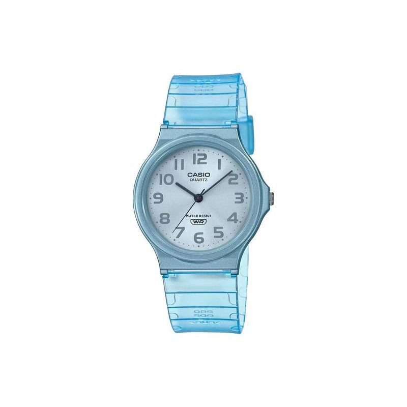 Este Relógio de Pulso Feminino Casio MQ-24S-2BDF em um tom de Azul Celeste é uma elegante adição à sua coleção de acessórios. Com um design clássico e minimalista ele combina perfeitamente com diversas ocasiões seja no dia a dia ou em eventos especiais. O mostrador analógico é simples e funcional garantindo fácil leitura das horas com precisão.\n\nFabricado pela renomada marca Casio sinônimo de qualidade e durabilidade este relógio é resistente e confiável. A pulseira em resina proporciona conforto ao usar e é ajustável para se adaptar ao seu pulso de forma perfeita. Adicione um toque de sofisticação ao seu estilo com este belíssimo relógio feminino que certamente será um destaque em seu visual.