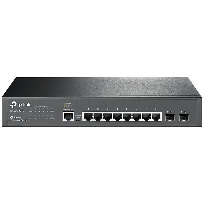 Desfrute de maior eficiência e controle na sua rede com o Switch de Rede Gerenciável TP-Link T2500G-10TS de 8 Portas. Projetado para atender às demandas de redes empresariais de pequeno e médio porte este switch oferece recursos de gerenciamento avançados para otimizar o desempenho e a segurança da sua infraestrutura de rede. Com o T2500G-10TS você poderá monitorar e configurar as portas da rede implementar políticas de QoS para priorização de tráfego e garantir a integridade dos dados com recursos de segurança robustos.\n\nAlém disso este switch da TP-Link é altamente confiável e oferece uma velocidade de transferência de dados de até 1Gbps por porta garantindo uma conectividade rápida e estável para seus dispositivos. Seja para conectar computadores servidores impressoras ou outros dispositivos de rede o T2500G-10TS proporciona um desempenho consistente e confiável. Invista na infraestrutura da sua rede com o Switch TP-Link T2500G-10TS e experimente um novo nível de eficiência e controle em suas operações de rede.